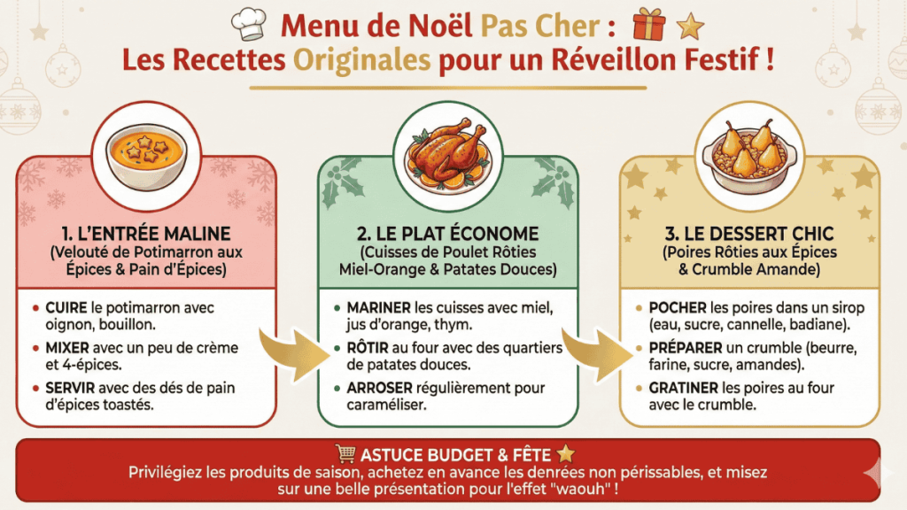 En 2025, le menu de Noël pas cher ressemble à une promesse : celle de croire encore à la fête, même quand les chiffres font peur. Reste alors à répondre à la question qui s’imprime au fil du mois de décembre : quelles surprises aimeriez-vous installer cette année, sans vous serrer la ceinture ?